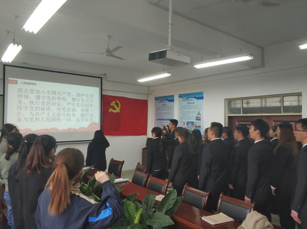 会上,薄会颖宣读了公司党委组织部《关于同意接受寇梦倩等18名同志为中共预备党员的批复》。辅导员董海鹏带领全体新党员面对党旗进行了庄严的入党宣誓。新入党员工党员代表齐斌表态发言,感谢党组织长期的关心培养和教育,决心牢记入党誓言,坚定理想信念,以党员标准严格要求自己,遵守校规校纪,勤奋学习、刻苦实践,发挥党员的先锋模范作用。