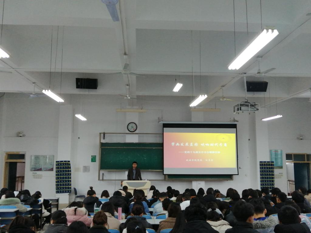 白志勇简要介绍了党的十九届五中全会概况,深入地分析了全会召开的时代背景,系统地解读了十九届五中全会的主要精神,最后就如何学习贯彻落实好全会精神,向同学们提出明确要求,给予具体指导。