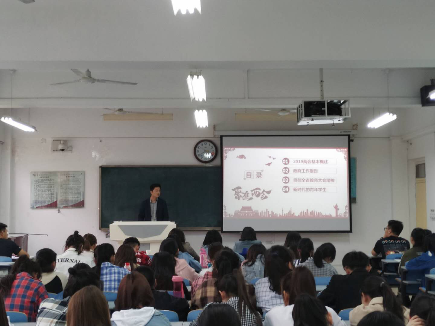 5月16日下午,公司举在思贤楼102室办2019年全国两会及全省教育大会精神宣讲会,校纪委副处级纪检员张选朝老师应邀为师生做了题为 “看全国两会、贯彻落实全省教育大会精神”的报告,公司党总支书记郝晓炜、党总支副书记薄会颖、全体辅导员老师、员工党员代表、员工会全体成员以及18级员工代表近百余人聆听报告。