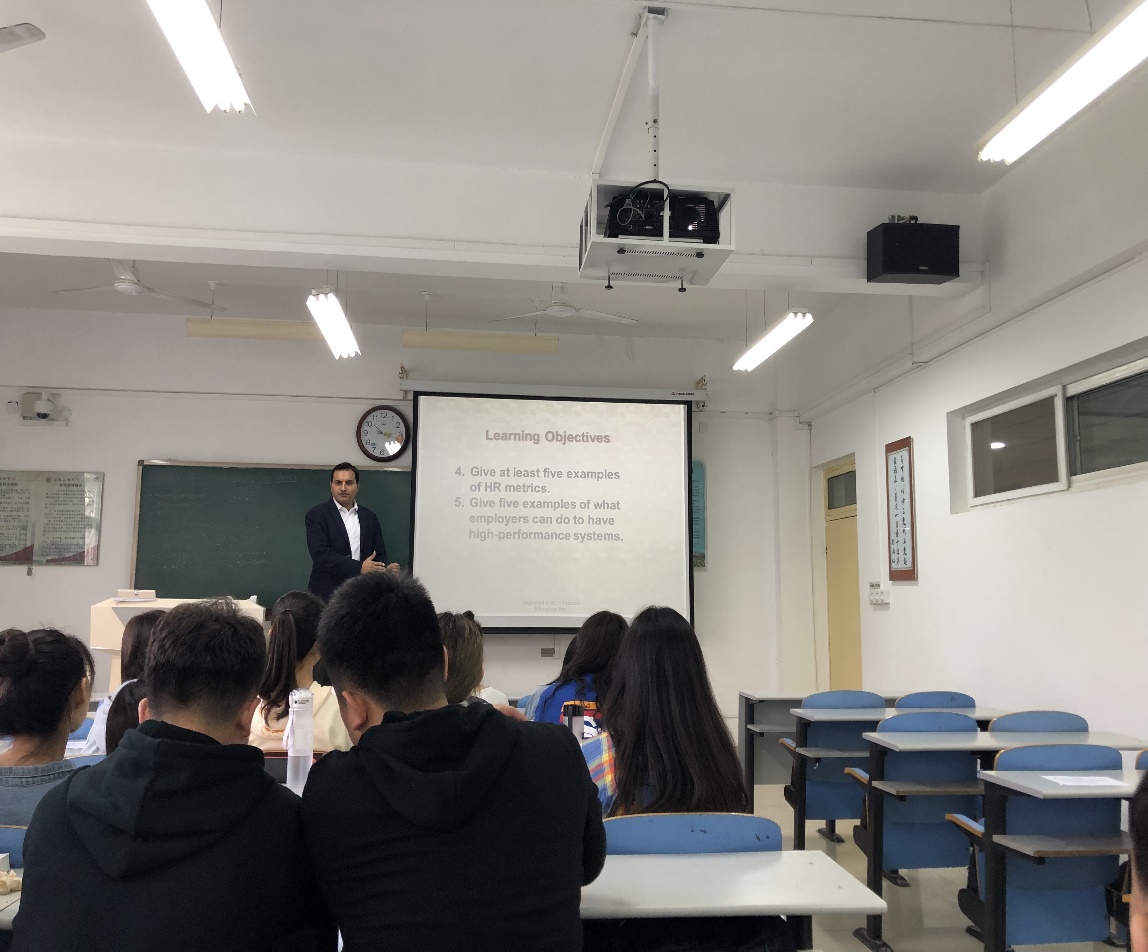 阿韦斯博士在教学中具备国际观念和国际视野,熟悉人力资源管理专业的国际化知识,了解世界学术发展前沿,他的创新意识与能力,以及跨文化交往能力在授课中能很好的传达给员工。另外,管理专业由于专业性质和知识外源性的特点,全英文授课不仅能提高员工专业外语水平,还能让员工在母语和外语双重语境中进行灵活的管理思维切换。阿韦斯博士的语言背景更能解决教师在双语授课中的跨文化障碍,推进人力资源管理专业课堂的应用性效果。