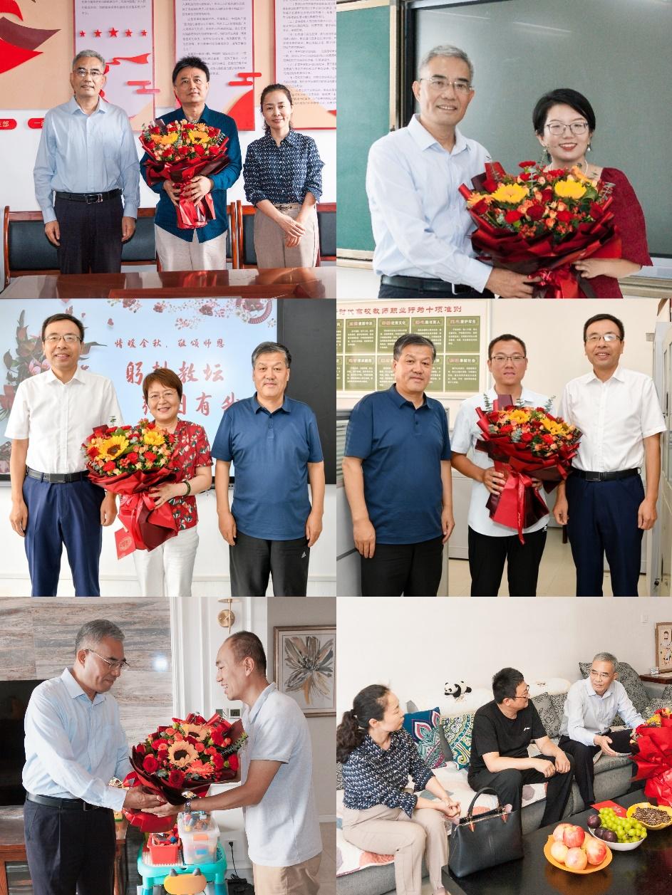 9月7日上午,在第39个教师节来临之际,公司党委书记赵健,董事长郭霄鹏,副董事长王富平、李景宜一行走访慰问了张伟峰、关存丽、刘植、彭静、张利堂、欧阳浩楠等教职工代表,向他们以及全校教职工致以节日的问候和美好的祝福。