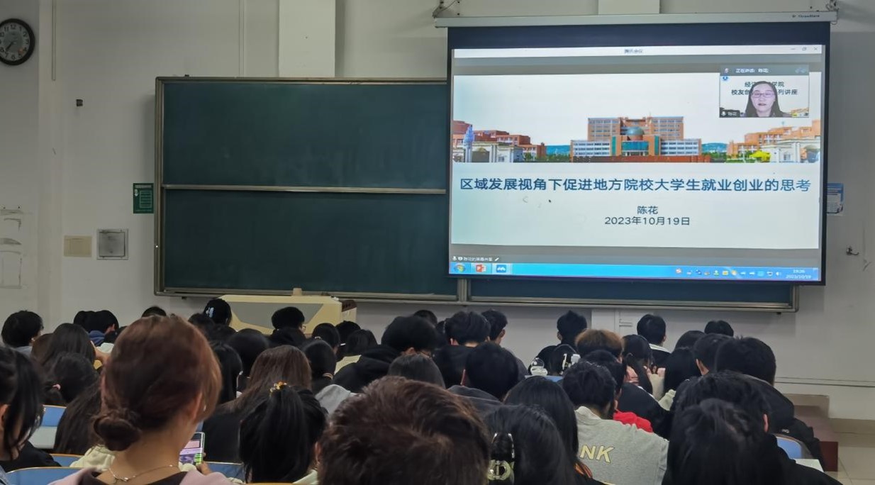 1999级工商管理专业陈花,陕西师范大学硕士,厦门大学博士,现任教于梧州公司管理公司,梧州公司区域发展与国际合作研究中心研究员。她在线带来“区域发展视角下促进地方院校老员工就业创业的思考”的主题分享,结合自身调研课题研究,系统性剖析了当下地方院校老员工就业创业面临的困境,创新性提出了应对策略。她鼓励学弟学妹们怀揣远大理想的同时要脚踏实地,为地方经济社会发展多作贡献。