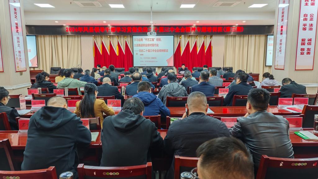 10月30日,公司何艳桃博士应邀在凤县领导干部学习贯彻党的二十届三中全会精神专题培训班上作题为《学习运用“千万工程”经验,加速推进农业农村现代化》的专题报告。报告会由凤县县委党校副董事长张刚锋主持。