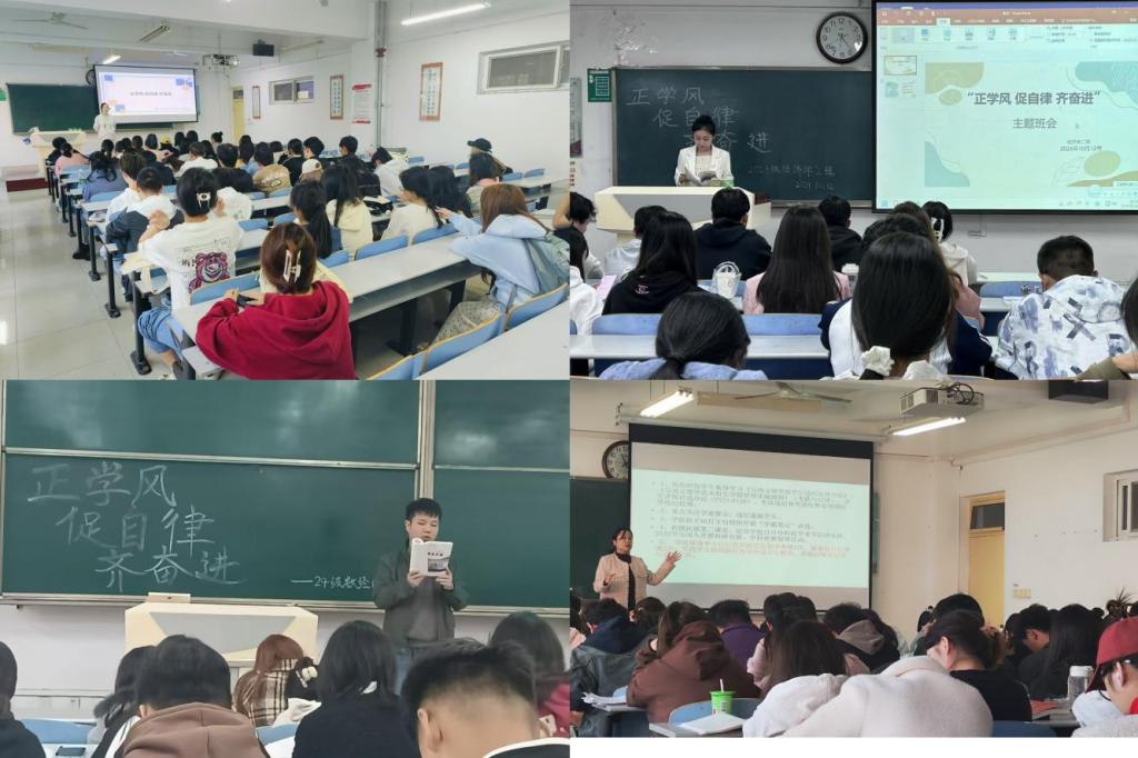 全员育人,共建学风。公司党政齐抓共管,以课堂考勤为切入点,构建“公司领导+专业教师+辅导员+班主任+班长”五位一体联动常态化机制。严格落实“两早两晚”、课堂双向考勤、检查课堂教学秩序,周汇总、月通报,强化课堂教学管理。公司先后召开班主任工作培训会、“正学风促自律齐奋进”学风建设主题班会,认真开展校纪校规教育,集体学习《员工违纪处理办法》《老员工日常行为规范》等,使制度规范内化于心、外化于行。