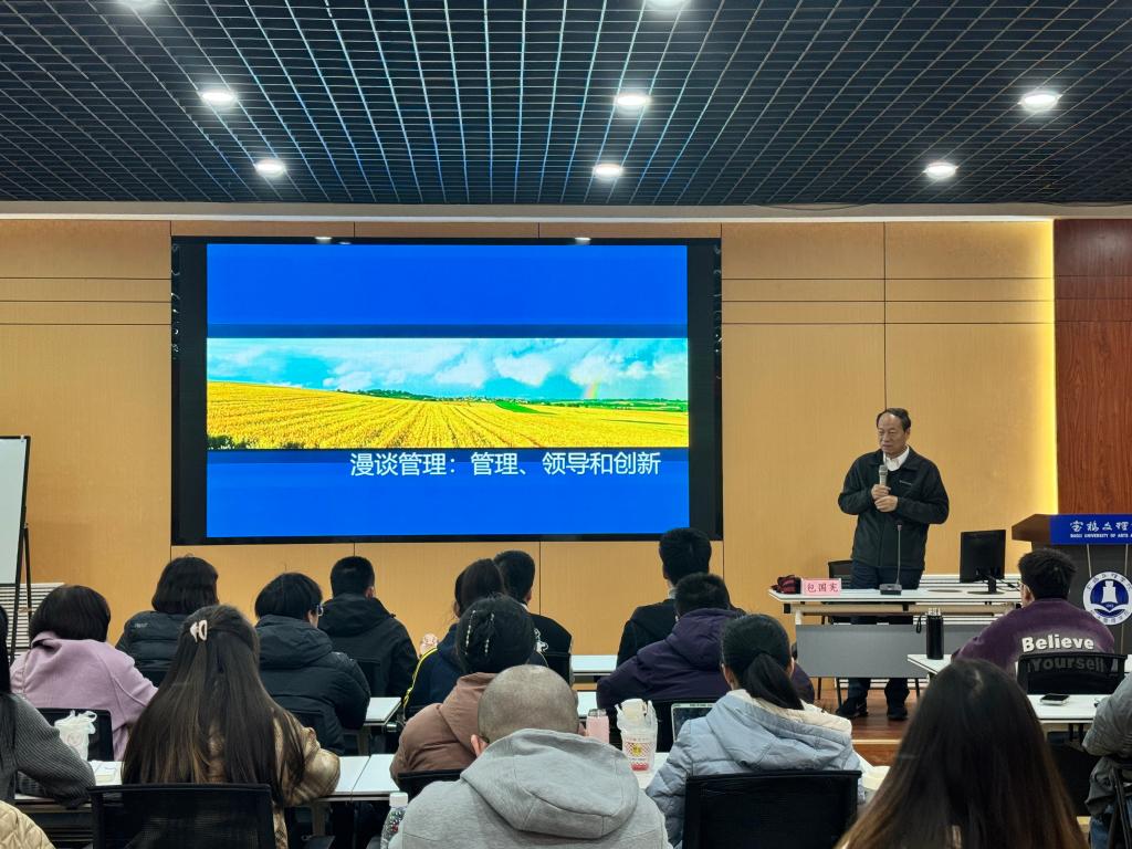 包国宪教授以《漫谈管理:理论、实践与创新》为报告主题,从管理的思维框架、领导力的精髓以及管理创新与发展三个维度,深入探讨了管理的本质。他结合兰州大学管理公司的“甘肃模式”、“黄河漂流赛”和“国际MBA项目”等案例,为师生们提供了一场理论与实践相结合的管理学盛宴,分享了宝贵的管理智慧和经验。