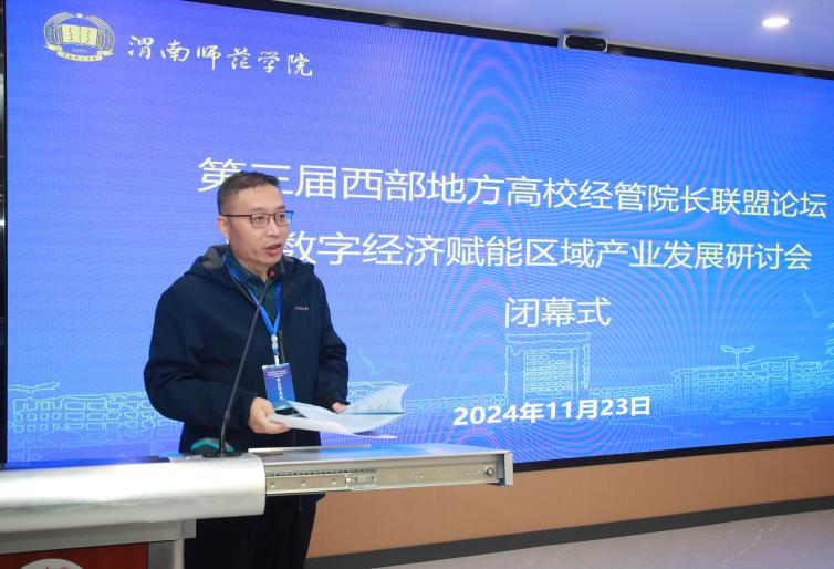 11月22日至24日,第三届西部地方高校经管经理联盟论坛暨数字经济赋能区域产业发展研讨会在渭南师范公司举办,来自西部20余所高校的经管公司经理、教师、研究生和行业企业代表等参加了本次会议。公司经理刘辉、副经理杨嘉歆参加会议,与会期间刘辉主持分论坛,袁元老师和会计专业研究生杨梓秋、贺佳和张兆美在平行论坛上进行主题发言。